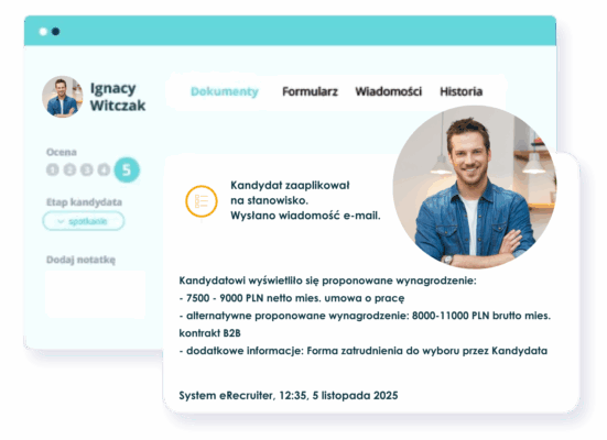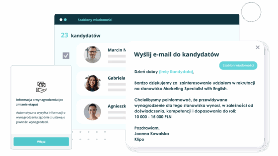 Dzięki temu rozwiązaniu kandydat, który znajdzie się na wybranym etapie, otrzyma automatycznie wiadomość e-mail o proponowanym wynagrodzeniu.